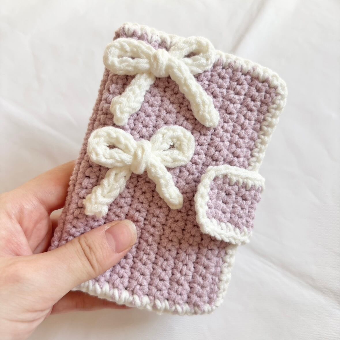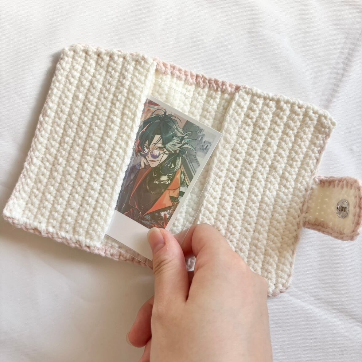 推し活や普段使いにぴったりの 手編みカードケース です。やわらかくてもっちりとした手触りで、大切なカードを優しく守ります。