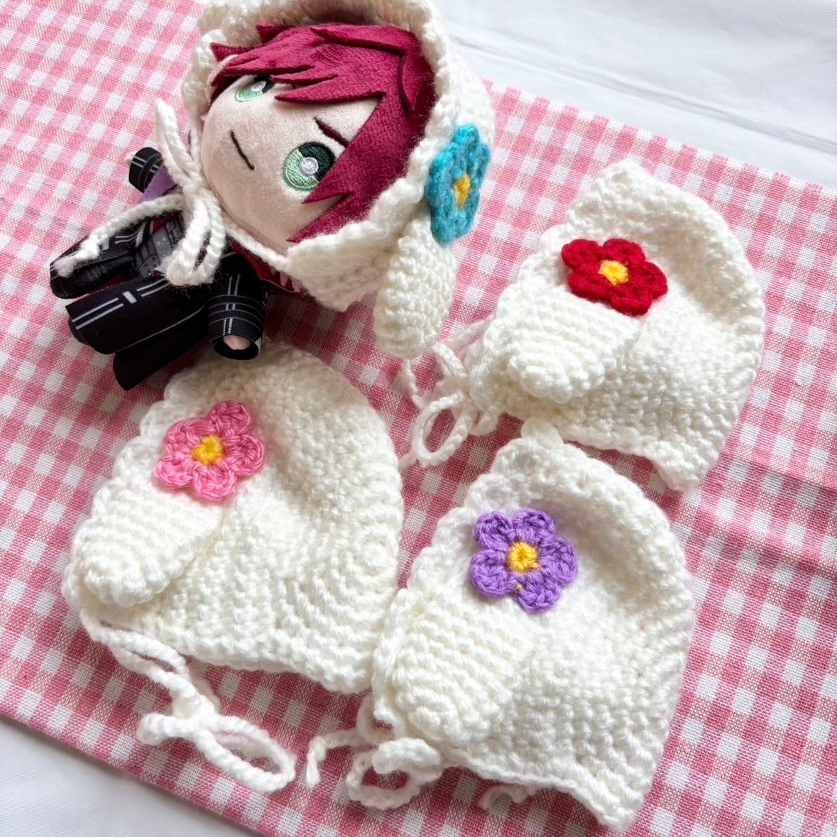 推しのぬいぐるみを、もっと可愛くドレスアップできる お花のボンネットハット。
