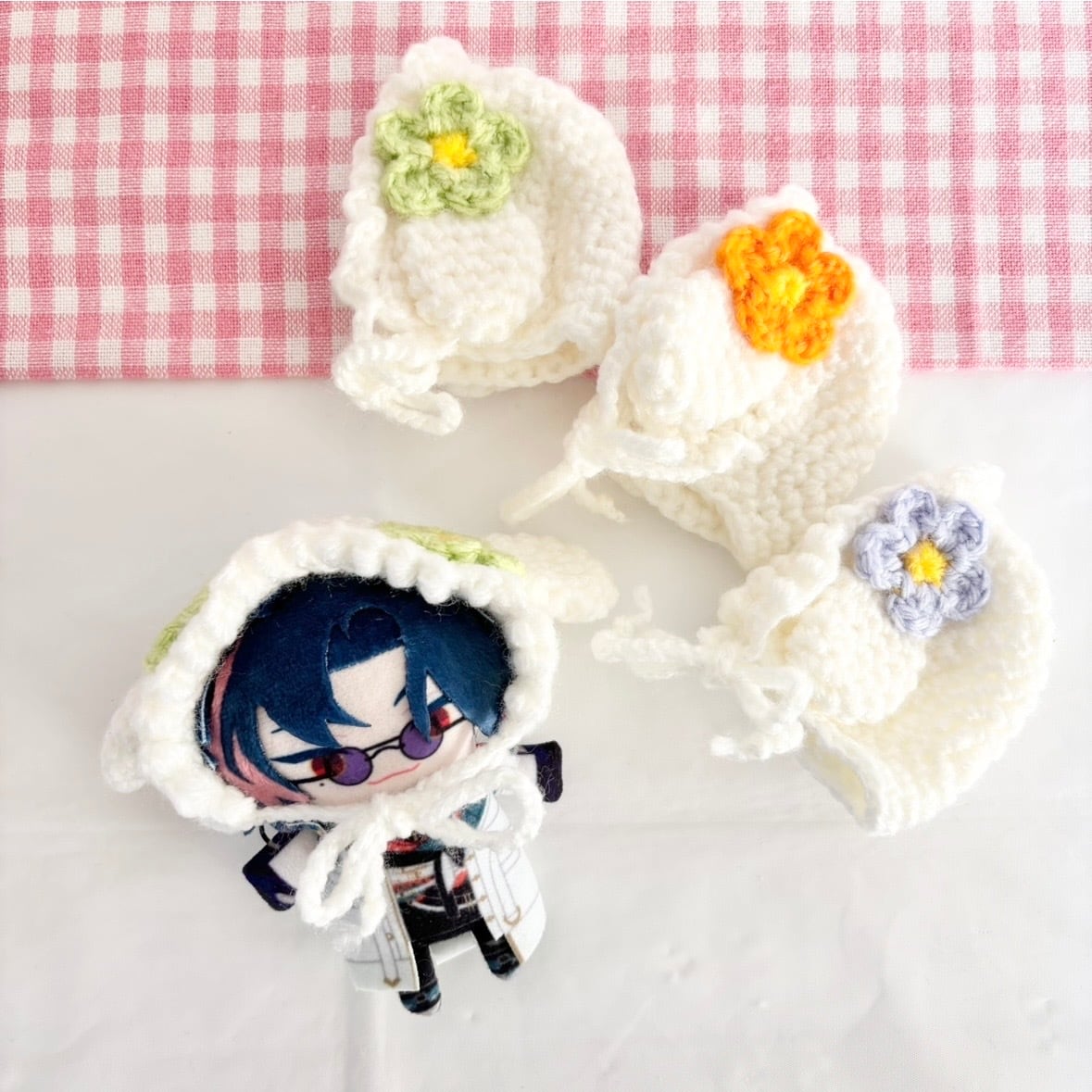 推しのパペやぬいぐるみを、もっと可愛くドレスアップできる お花のボンネットハット。