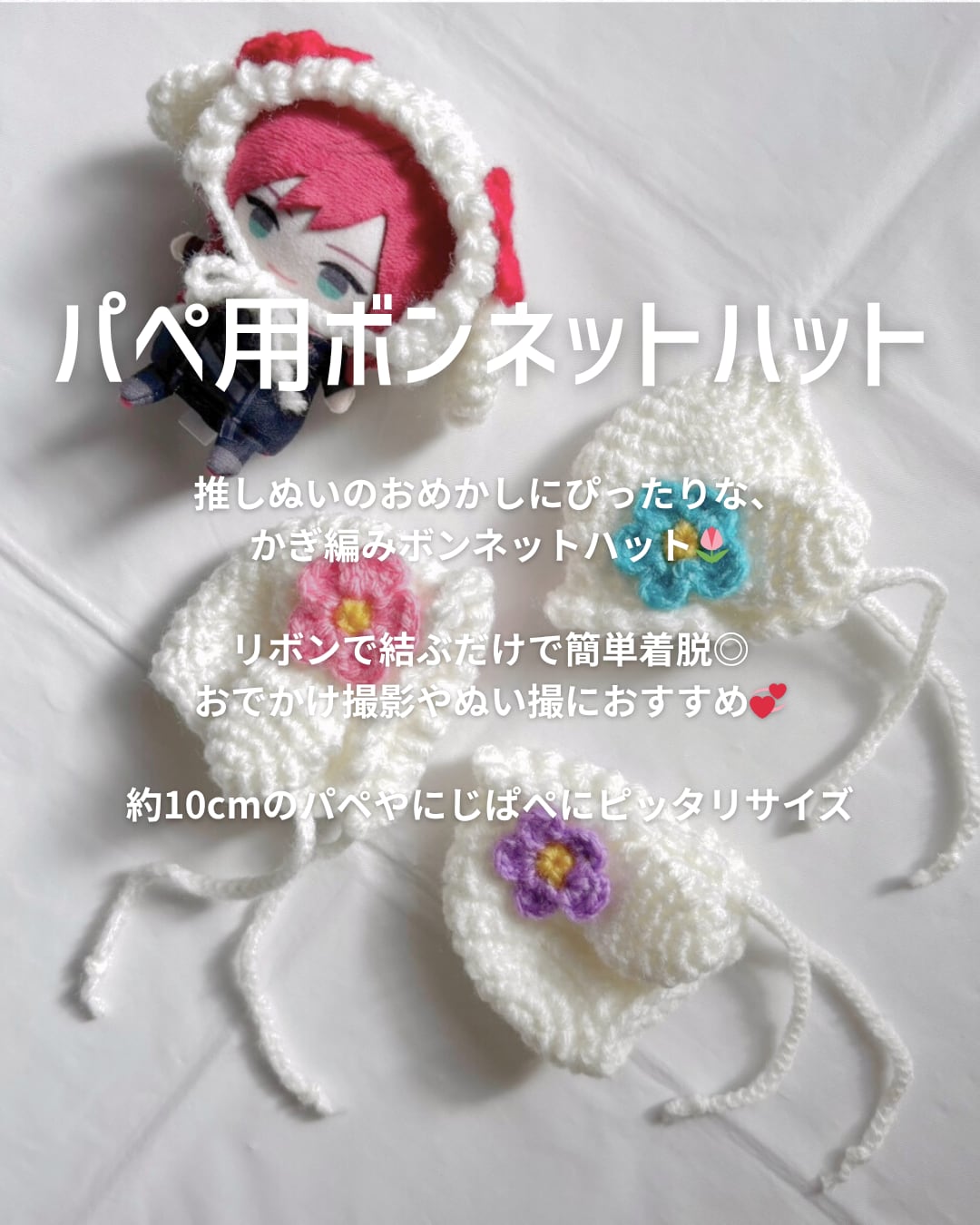 【推し活】パペ用お花のボンネットハットΙ にじぱぺサイズΙ推し活アイテム